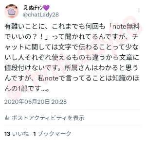 だからまずは、有料noteなんて置いといて自分で稼働してチャットというものを理解しましょ?