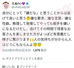 嫌なお客さんからは逃げて得意なお客さんだけ相手にしていけるスキルを育てていきましょう🙆‍♀️
