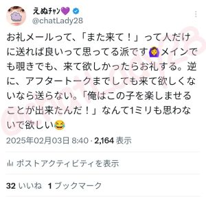 その日のチャットが良ければ、お礼メールが来ようが来まいが
